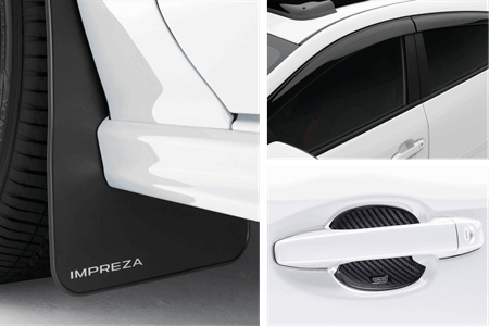 Bundle and save 10% off! Protect the exterior of your Impreza from the urban jungle to camp trails with this package that includes mud flaps, STI door handle cup protector, and side window deflector.