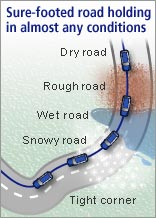 When it comes to secure handling and stability in both everyday driving and adverse conditions, Subaru's symmetrical full-time AWD system will always have the edge over other ordinary four-wheel drive or all-wheel drive systems. With a Subaru, its instinctive, rally-proven capabilities inspire you to drive the car with confidence - even when travelling quickly over rough or slippery roads, where traction can be easily compromised. It all comes down to pure driving enjoyment no matter where your travels take you. In other manufacturers' systems, low traction levels usually activate some form of traction control system, which attempt to make up for the vehicle's inherent flaws. These traction control systems can lead to instability when cornering on wet or greasy surfaces, as a sudden loss of power can upset the vehicle's balance. At Subaru, we believe that the first line of defence should always be the tenacious grip and stability of symmetrical full-time AWD.